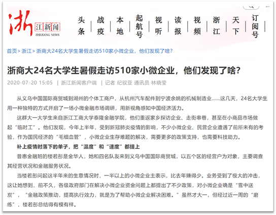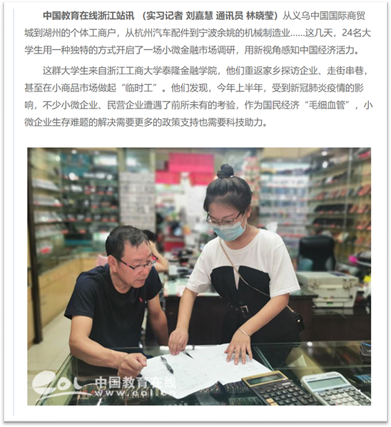 24/span>名大学生,重返家乡探访企业、走街串巷,甚至在小商品市场做起“临时工”。从义乌中国国际商贸城到湖州的个体工商户,从杭州汽车配件到宁波余姚的机械制造业……此次暑期社会实践调研团队一共分为6/span>组,每组4/span>人,分别在杭州、温州、宁波、金华等地进行,共走访了510/span>家小微企业。/span>/p> 他们用一种独特的方式开启了一场小微金融市场调研,用新视角感知中国经济活力。今年上半年,受到新冠肺炎疫情的影响,不少小微企业、民营企业遭遇了前所未有的考验,作为国民经济“毛细血管”,小微企业生存难题的解决需要更多的政策支持也需要科技助力。/span>/p> 调研团队主要了解家乡的小微企业的经营状况和金融服务情况,在调研的这段时间,他们接触到了各种类型的小微企业,身边随处可见的小吃店、服装店、超市,60%/span>小微企业的月营业额在5/span>万元以下。再从企业规模看,这次调研结果显示,60%/span>的小微企业员工不到5/span>人,经营年限在5/span>年以上的企业占50%/span>。小微企业及个体户中,大部分是联系千家万户的“小店经济”,在调研中发现,20.5%/span>小微企业及个体户面临现金流危机。其中,有融资需求的小店中,70%/span>的小微企业主表示只要给予一点支持,就能很快迈过难关。/span>/p> 虽然这些大学生都才大一,他们宣传国家出台的一系列金融综合改革政策外,还倾听小企业主们的心声,并真实地将他们的所见、所闻、所感记录了下来。通过这次调研的内容可以了解当地小微金融市场需求状况,结合现有金融产品系,确定未来可提供的具体产品策略,包括担保、利率、期限和还款方式等主要要素,另外本次实践调研中获得的调研数据,也将会用于之后的“挑战杯”大学生课外学术作品竞赛中。这是一次很有意义的调研活动,让还在学理论的大一学生回到家乡调研,感受中国经济的脉动,既有一种情怀也有一种责任。/span>/span>/p> 这次意义特别的调研活动受到许多校内外媒体的关注和报道,包括中国教育在线、钱江晚报、浙报融媒体、浙江新闻、科技金融时报等多家媒体都对在线赌博网站-在线赌场